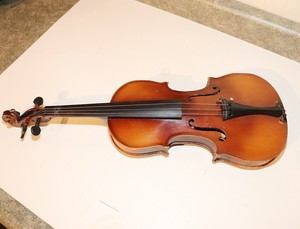 Violin - Antonius Stradivarius Cremonenfis Faciebat Anno 17 This is marked MODEL ANTONIUS STRADIVARIUS CREMONENFIS FACIEBAT ANNO 17 on the inside label. Thats it no made in whereever. No numbers after the 17. It has a few wear marks. The very bottom has a crack by where your chin would sit. Both need new strings. The bow has wear not bad. I included lots of pictures. If you have any concerns please ask.