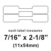 DYMO 30299 Jewelry Labels | 7/16"x2.125" | HouseLabels.com description DYMO compatible 30299 barbell-style price tag labels (HL-30299) are 100% compatible with any DYMO LabelWriter printer. These labels are ideal for labeling eyewear, jewelry and other retail items. These dymo 30299 jewelry labels contain two labels stacked horizontally to double your labeling capacity. Dymo 30299 Measure: 7/16" x 2-1/8"
