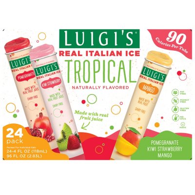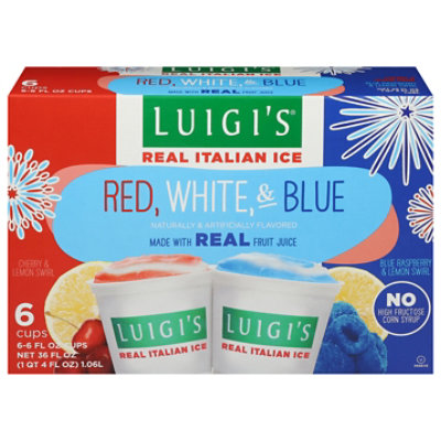 Luigi's Real Italian Ice, Cherry, 6 Ounce, 6 Count (Frozen) Luigi's Real Italian Ice is sure to satisfy every member of your home. At only 100 calories, it provides you with the ideal alternative to a high-calorie dessert. The lemon and strawberry flavors have no top allergen-containing ingredients and are made on a peanut, tree nut, dairy, gluten and egg-free line.