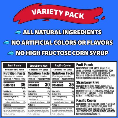Capri Sun Fruit Punch, Strawberry Kiwi & Pacific Cooler Naturally Flavored Juice Drink Blend Variety Pack, 30 ct Box, 6 fl oz Pouches