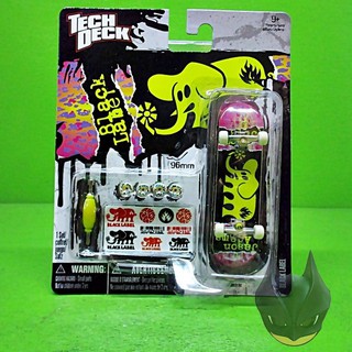 Tech Deck 3 pack: Black Label : BananaToys.com Tech Decks come with metal trucks, grip tape and real skate company graphics. Switch it out with the included set of graphic wheels and mess with the kingpin. With hundreds of designs from all the top skate companies, you'll want to collect them all." Features: Black Label 3 pack; 96mm Skateboard; 5 stickers; Random designs; Teck Deck
