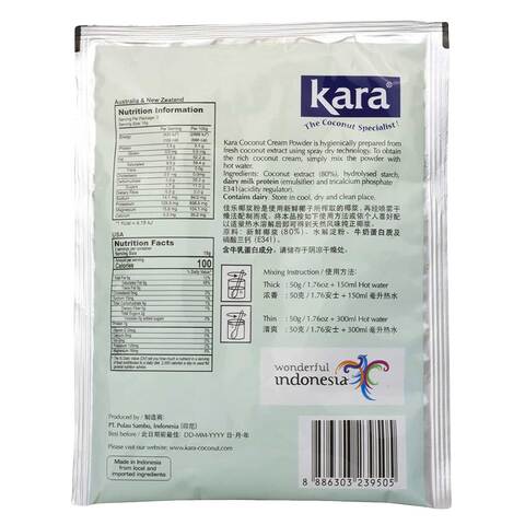 2 Packs Kara Coconut Cream Powder 1.76 Oz - Amazon.com About this item. Kara Coconut Cream Powder (Coconut Milk Powder), 1.76 oz -Pack of 2. Can mix with hot water to make coconut milk. Coffee Creamer Substitution (Contains less than 20% milk protein) A popular coconut milk for use in Thai, Vietnamese, and Indian dishes.