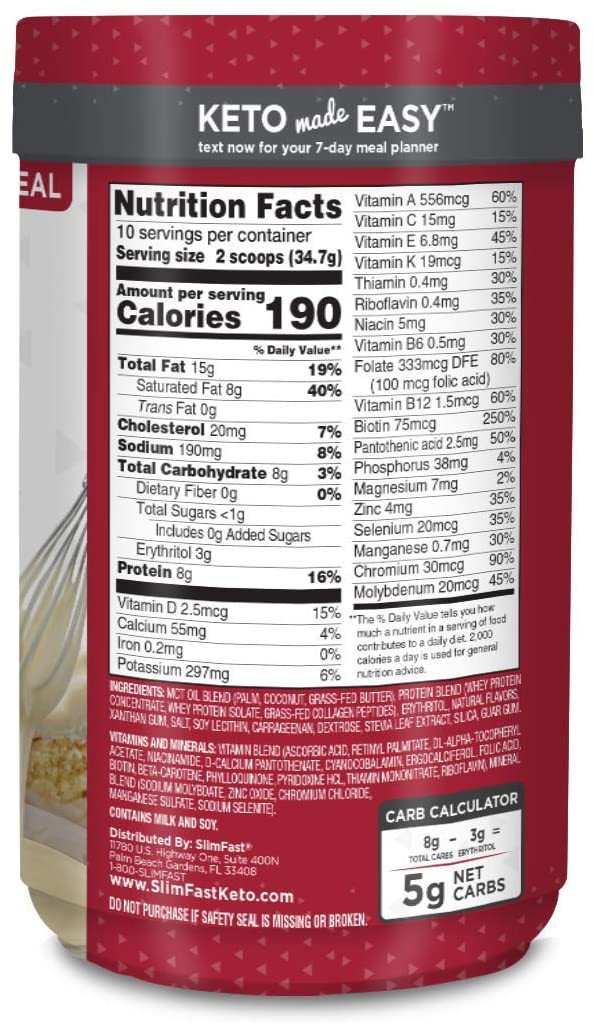 Amazon.com: SlimFast Keto Meal Replacement Powder, Fudge Brownie Batter ... SlimFast Meal Replacement Powder, Original French Vanilla, Weight Loss Shake Mix, 10g of Protein, 22 Servings (Packaging May Vary) 2,160 1 offer from $11.48 SlimFast Low Carb Snacks, Keto Friendly for Weight Loss with 0g Added Sugar & 4g Fiber, Iced Lemon Drop Cup, 14 Count Box (Packaging May Vary) 20,100 #1 Best Seller in Whole Grain Bars